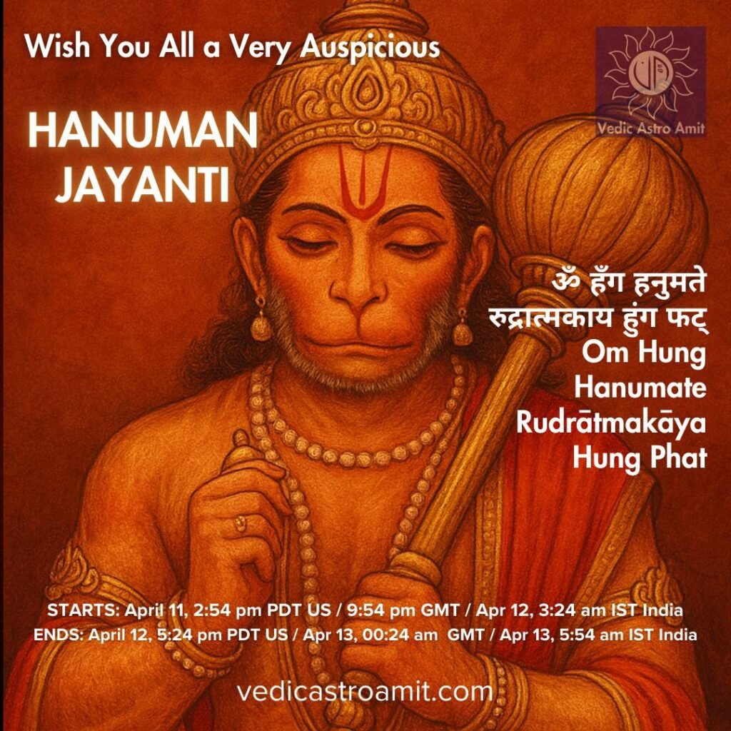Hanuman Jayanti is coming in 5 days on the upcoming Full Moon, Poornima. See exact timing in the image below. Let us celebrate these next 5 days together awakening the prana shakti within. From wherever you are, Precisely at 6:00 am and 6:00 pm pdt US (6:30 am and pm IST India) chant this Hanuman mantra for 5 minutes: Om Hung Hanumate Rudrātmakāya Hung Phat / ॐ हँग हनुमते रुद्रात्मकाय हुंग फट् Collective Sadhana has huge power. When Rama (the Self) forgets his power, Hanuman (the awakened…